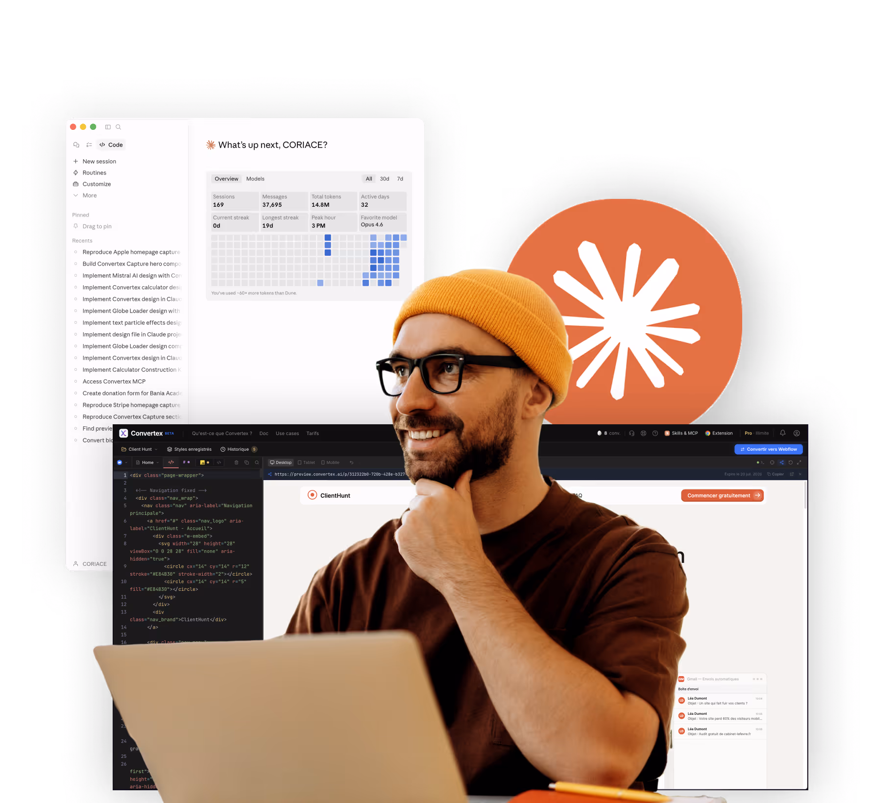 Le pipeline secret de CORIACE : l'IDE Convertex pour convetir n'importe quel site fait par l'IA dans Webflow/Framer. Maîtrise un process de prestations ultra-productif comme l'agence Coriace Studio. Un workflow que personne d'autre n'enseigne.
